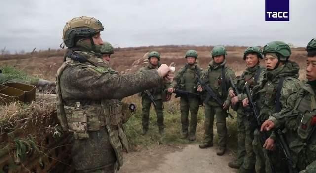 朝鲜士兵围在一名俄罗斯教官周围